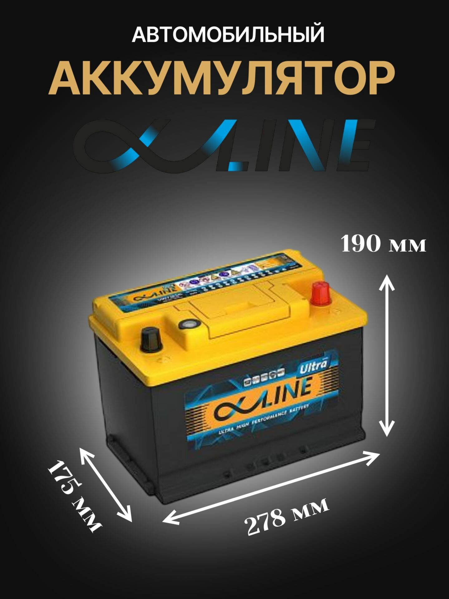 Аккумулятор автомобильный ALPHALINE ULTRA 78.0 L3 (57800) 278/175/190 обратная полярность 78Ач 780А