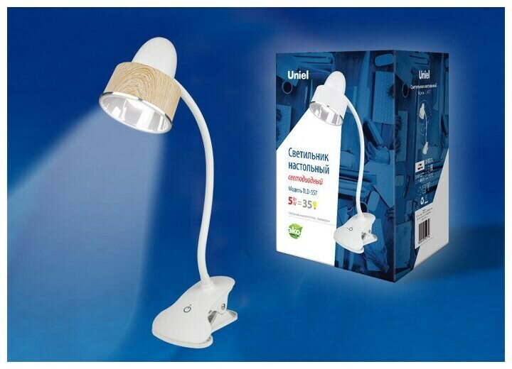 Лампа настольная для школьника светодиодная от сети на прищепке LED, 5 Вт, Uniel