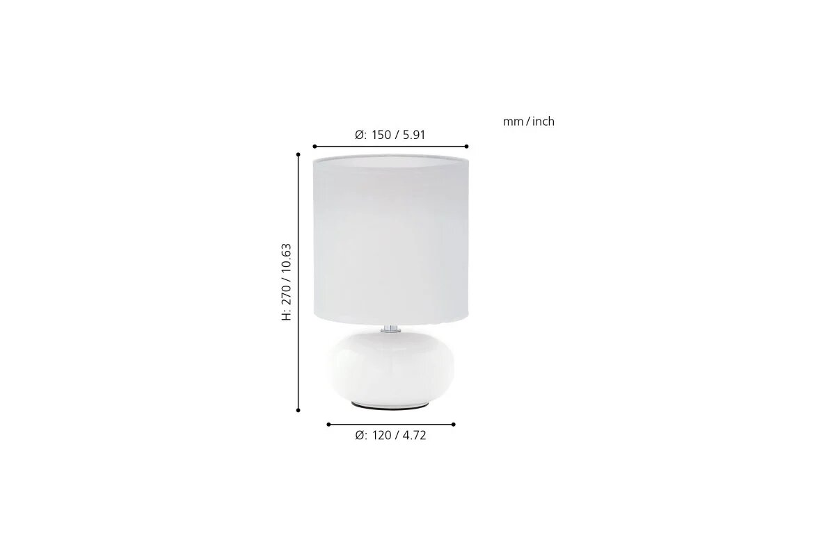 Настольная лампа TRONDIO, 1х40W (E14), Ø150, H270, осн. Ø120, керамика, белый/текстиль, белый