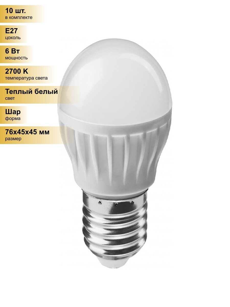 Купить (10 шт.) Светодиодная лампочка онлайт шар G45 E27 6W(450Lm) 2700K 2K 76x45 ОLL-G45-6-230-2.7K-E27 71645 Теплый белый. Цоколь E27