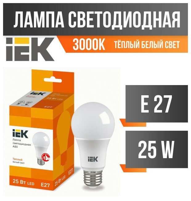 Лампа LED A80 шар 25Вт 230В 3000К E27, IEK LLE-A80-25-230-30-E27 (1 шт.)