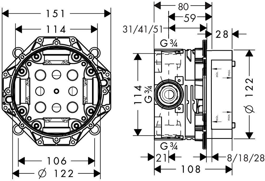 | Дополнительная информация | термостат с запорным/переключающим вентилем, iBox universal скрытая часть; длина/ширина душевой лейки: 110 мм; длина/ширина верхнего душевого диска: 180 мм |