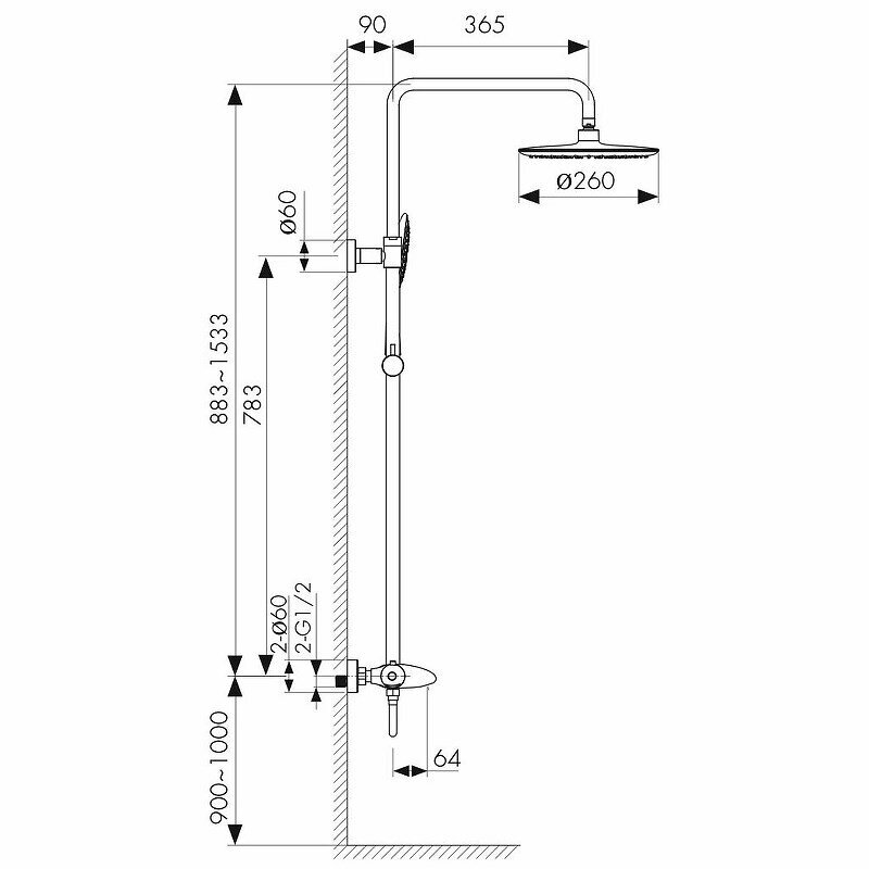 | Комплектация | Смеситель / верхний душ / штанга / ручная лейка / шланг для душа |