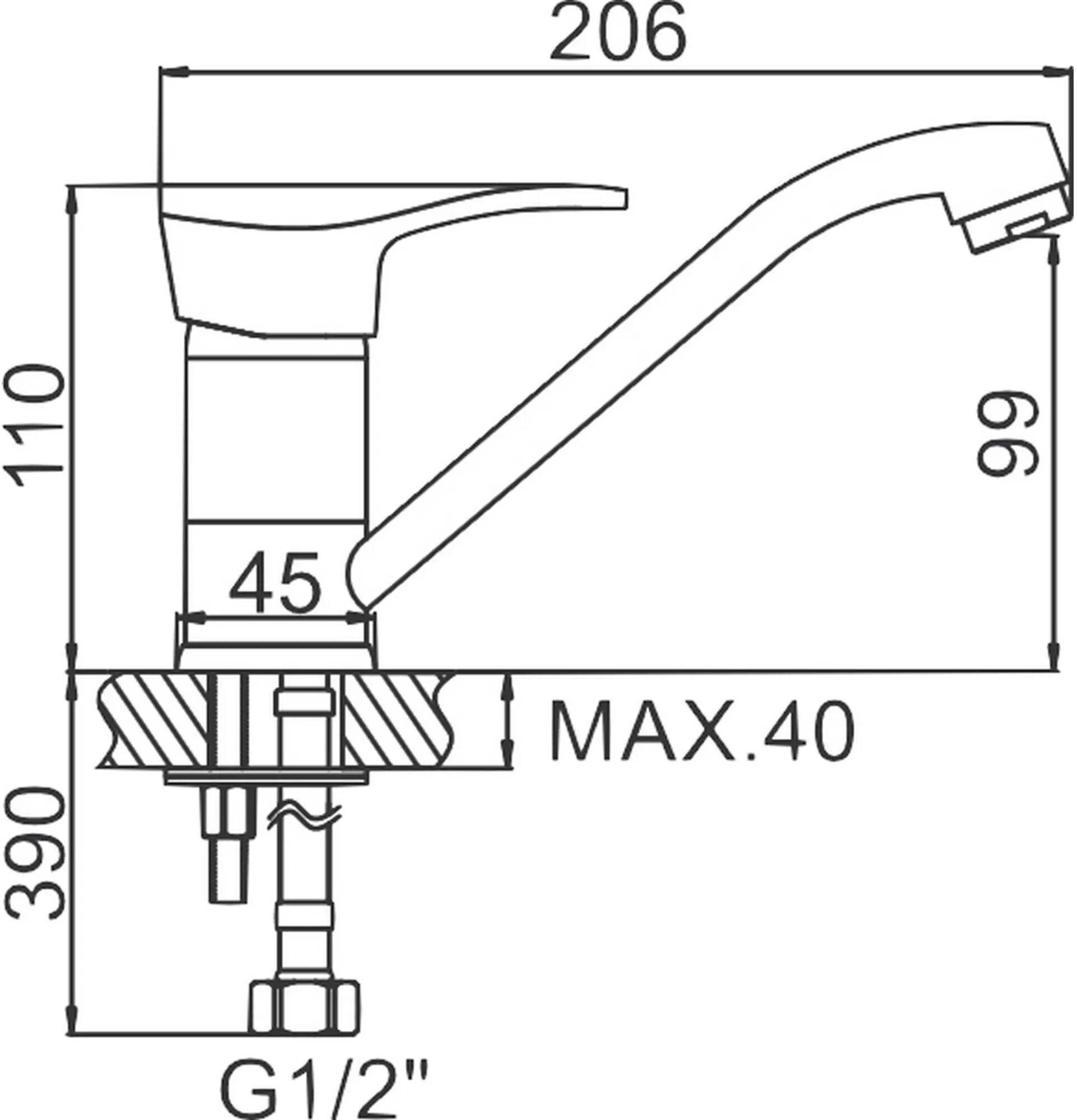 | Особенности | аэратор / поворотный излив / система быстрого монтажа |