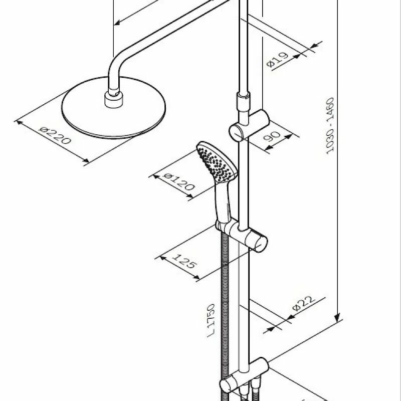 F0780022 Like, душ.система,набор:верхн.душ d220 мм, ручн.душ 3ф-ции d 120 мм, душ.штанга 1030-1460 м