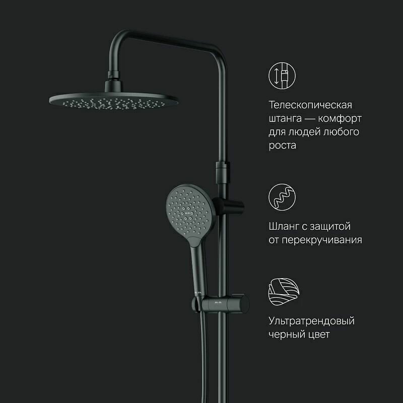 СохранитьДушевая система AM.PM Like F0780022 стойка с тропическим душем, черная матовая интересное: