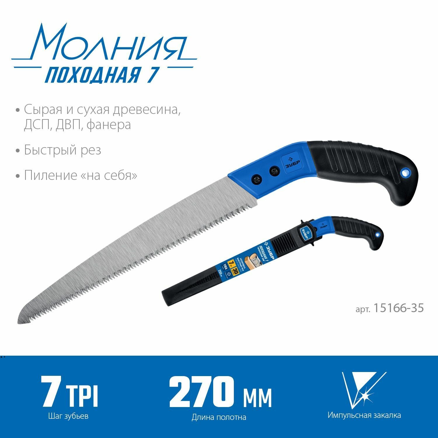 Ножовка для быстрого реза сырой древесины, ЗУБР Походная 7, 270 мм, 15166-35 интересное: