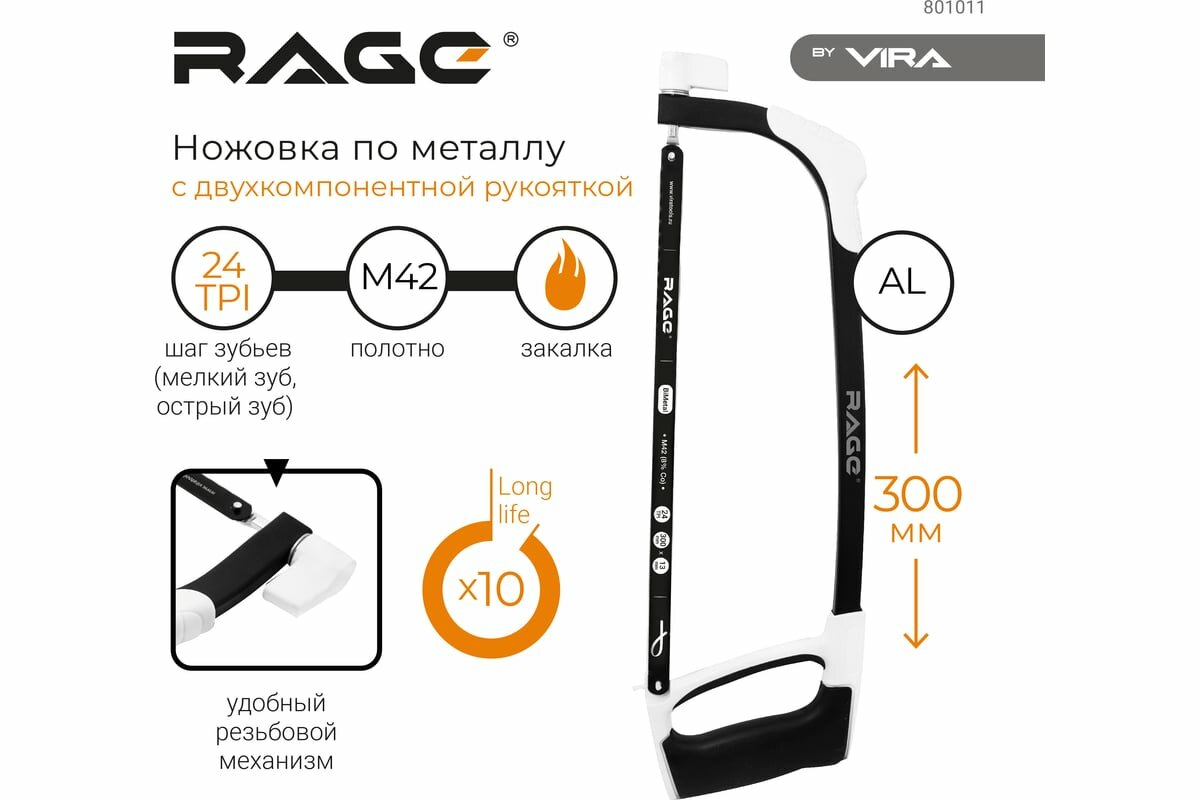 ножовка по металлу RAGE by VIRA 300мм прорезиненная рукоятка