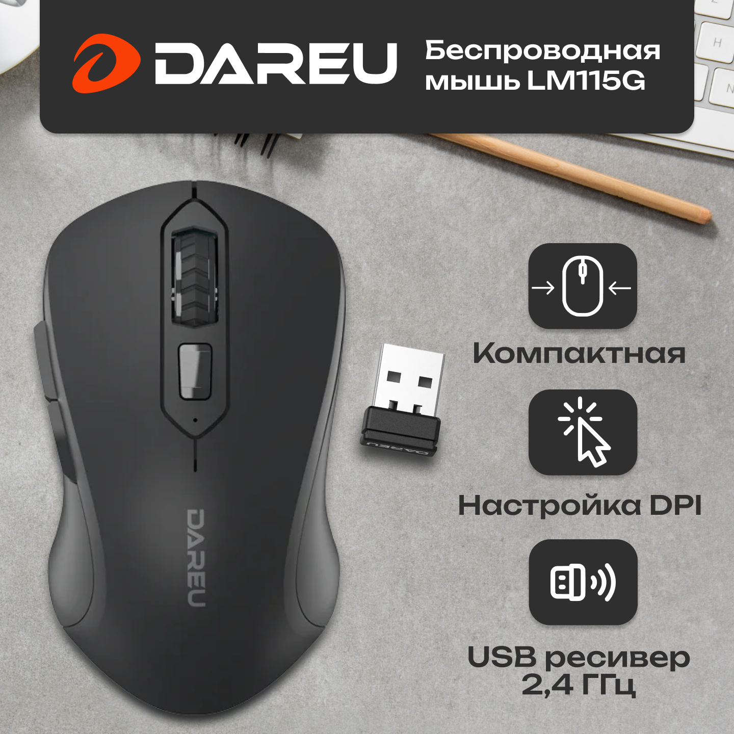 Мышь беспроводная Dareu Lm115g Black (черный), DPI 800/1200/1600, ресивер 2.4GHz, размер 107x59x38мм
