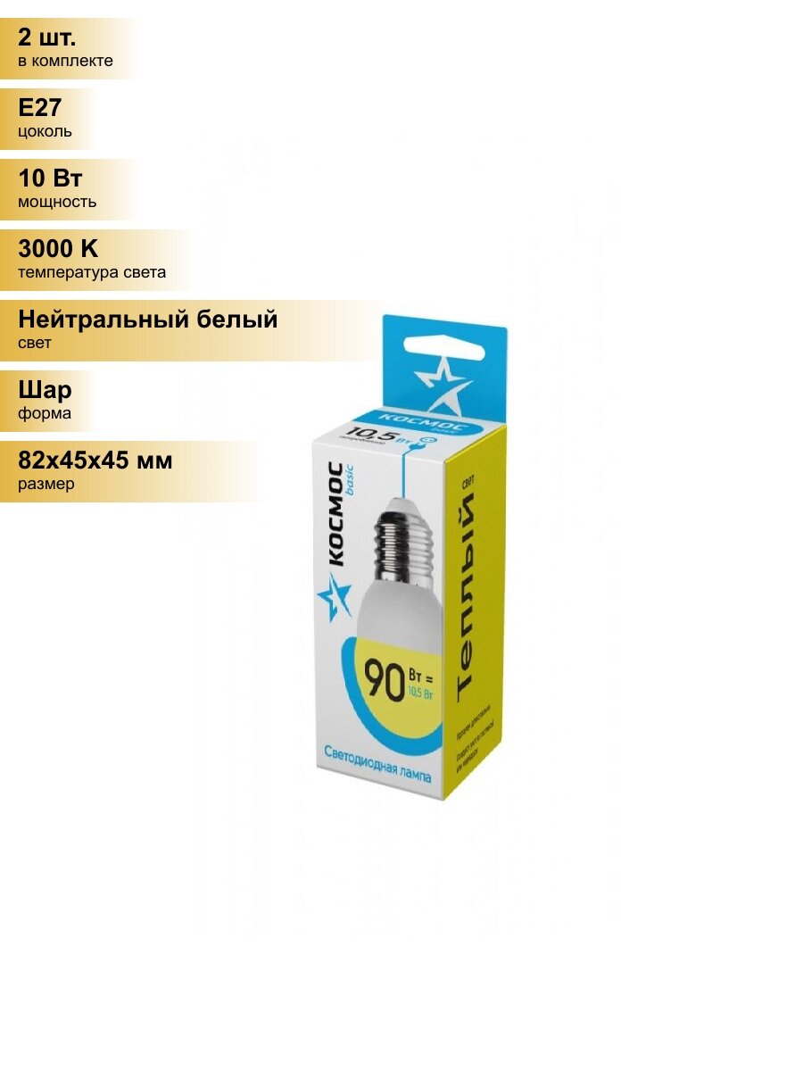Купить (2 шт.) Светодиодная лампочка Космос шар E27 10,5W (10W) (840lm) 3000K 2K матов. 82x45 LkeLED10.5wGL45E2730 Нейтральный белый. Цоколь E27