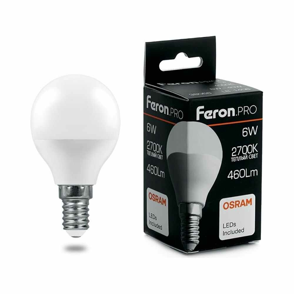 Купить FERON Лампа светодиодная PRO LB-1406 Шарик E14 6W 2700K 38065