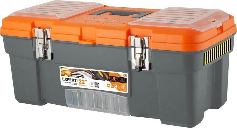Ящик для инструментов с метал. замками Blocker Expert 22", цвет серо-свинцовый/оранжевый