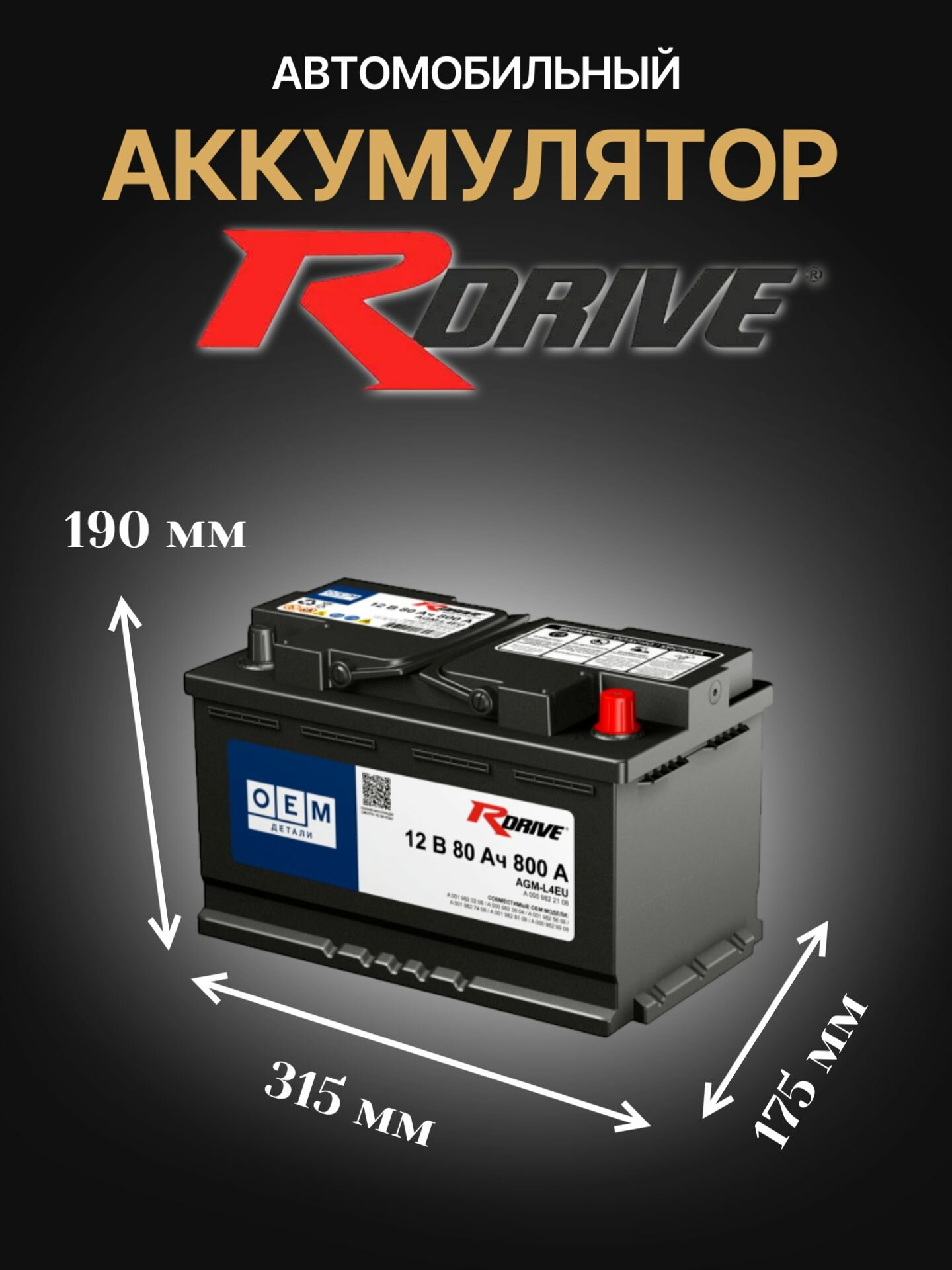 Аккумулятор автомобильный RDrive AGM A0009822108 12В 80Ач 800А интересное: