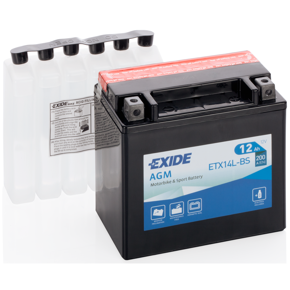 Etx14l-Bs_аккумулятор! Евро 12Ah 200A 150/90/145 Moto Agm Сухозар. С Упаковкой Электролита EXIDE арт. ETX14L-BS