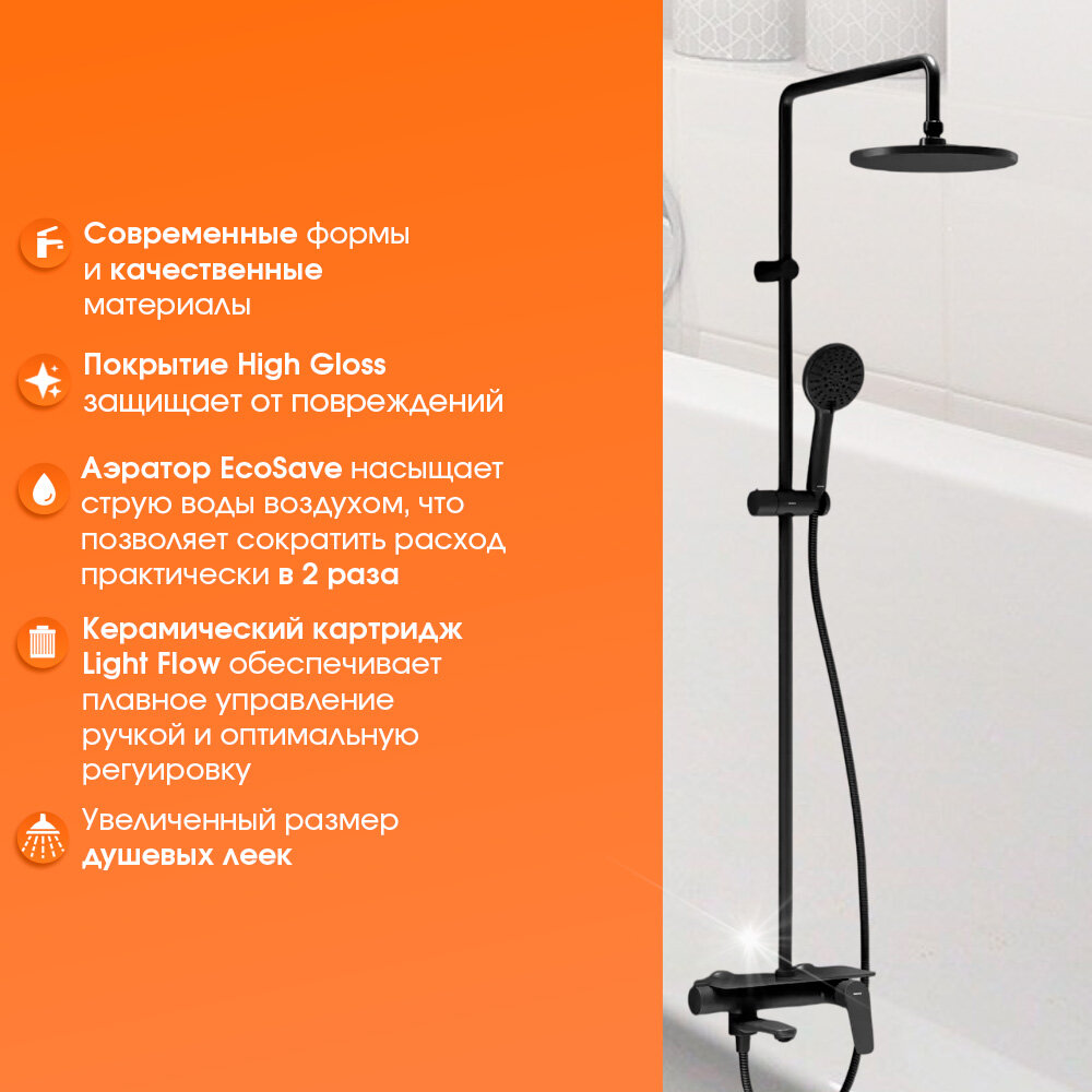 Душевая система Damixa Venus, верхний душ, тропический дождь, черный