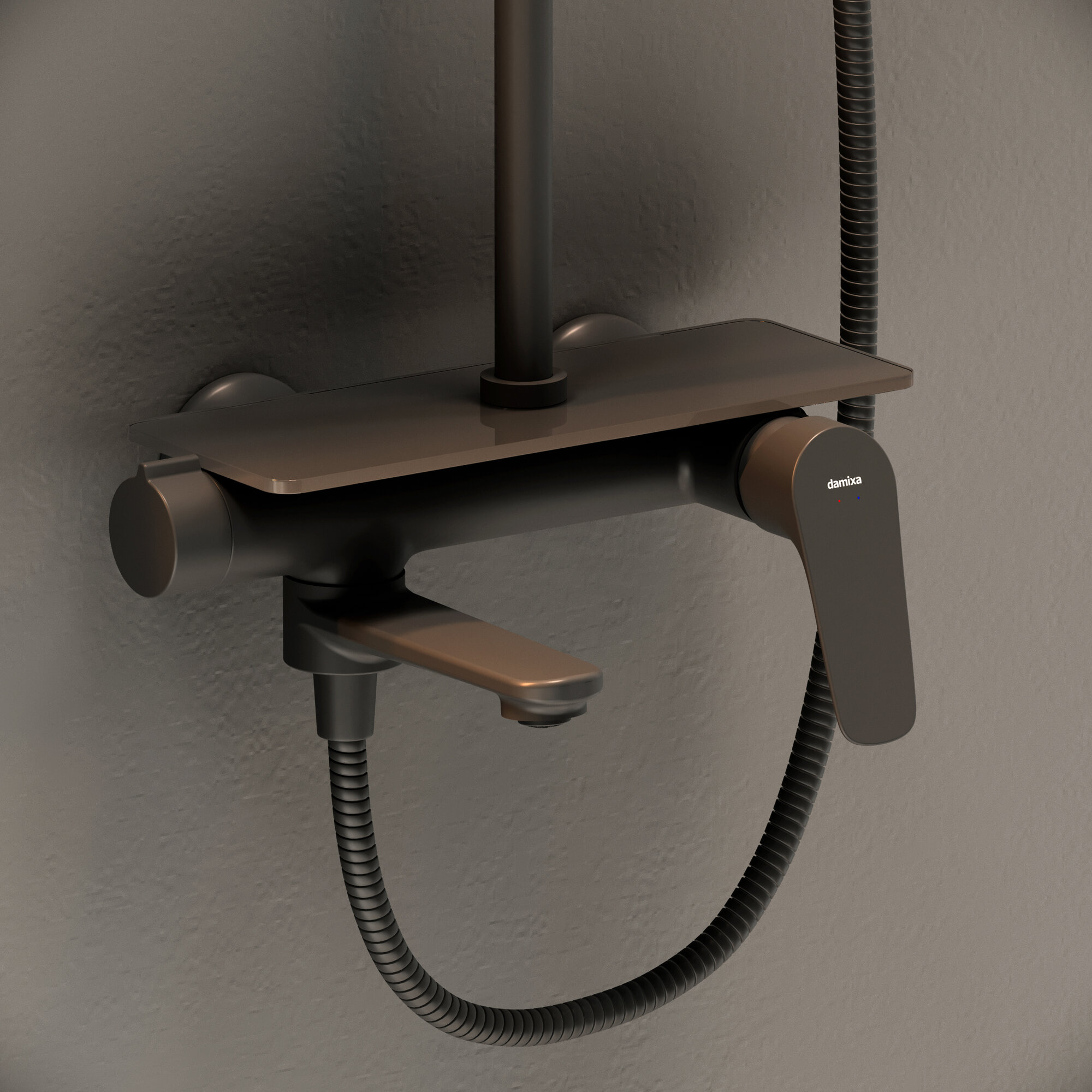 Душевой комплект/ Душевая стойка со смесителем Damixa Venus DX9S77720000 поворотный излив, полочка