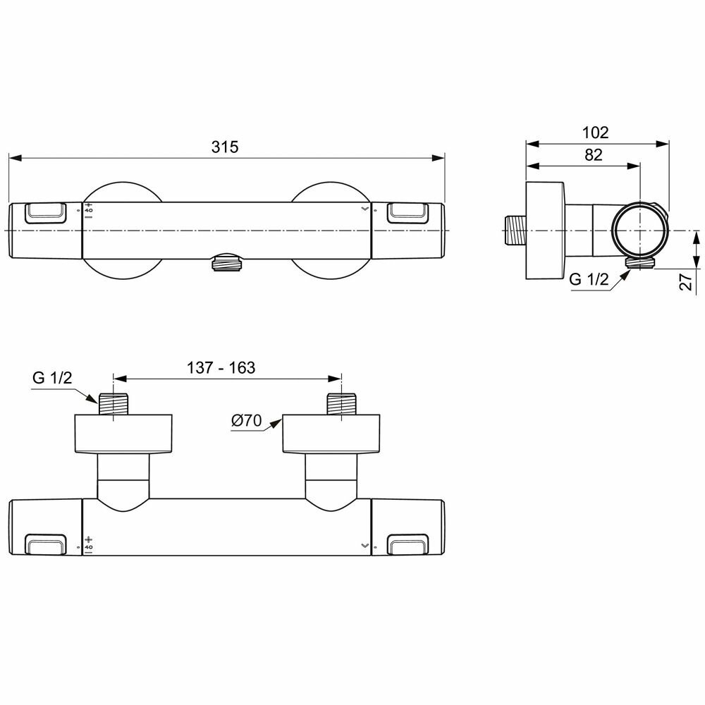 Настенный термостатический смеситель для душа Ideal Stndard Ceratherm T25 A7201XG