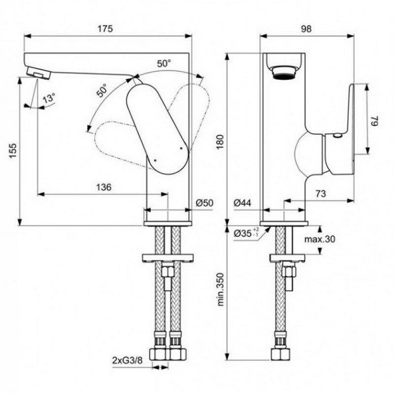 Смеситель для умывальника ручка сбоку одноручный CERAFINE O Ideal Standard BC555AA
