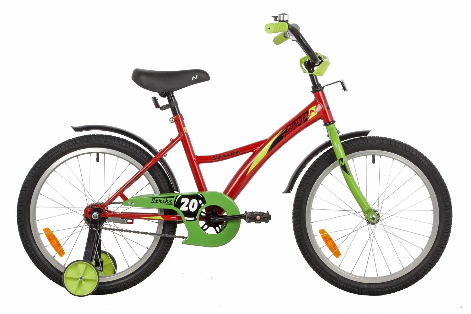 Велосипед NOVATRACK 20" STRIKE красный, тормоз ножной, крылья короткие, защита А-тип