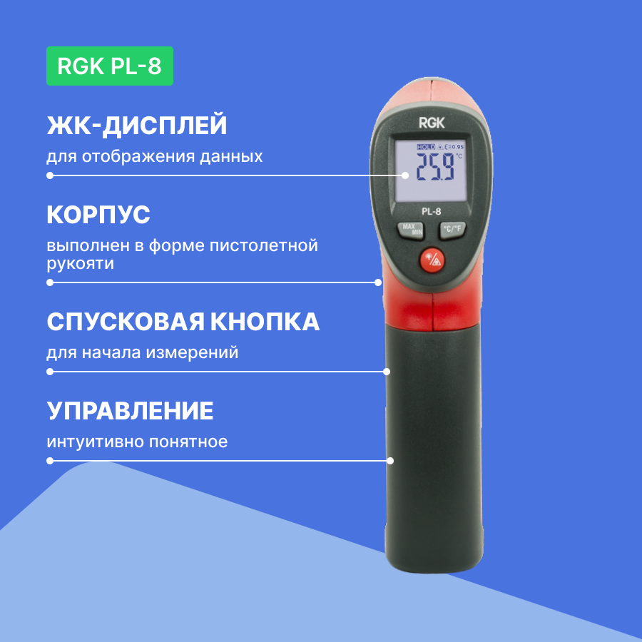 Купить Пирометр RGK PL-8 Оптическое разрешение 8:1