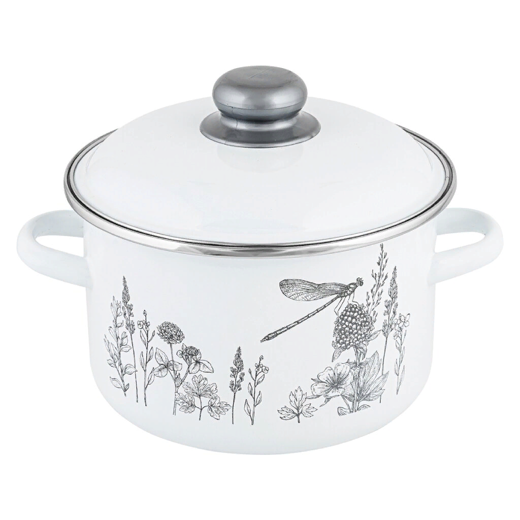 Кастрюля с крышкой эмалированная FLORA 2 л, белый, подходит и для индукции