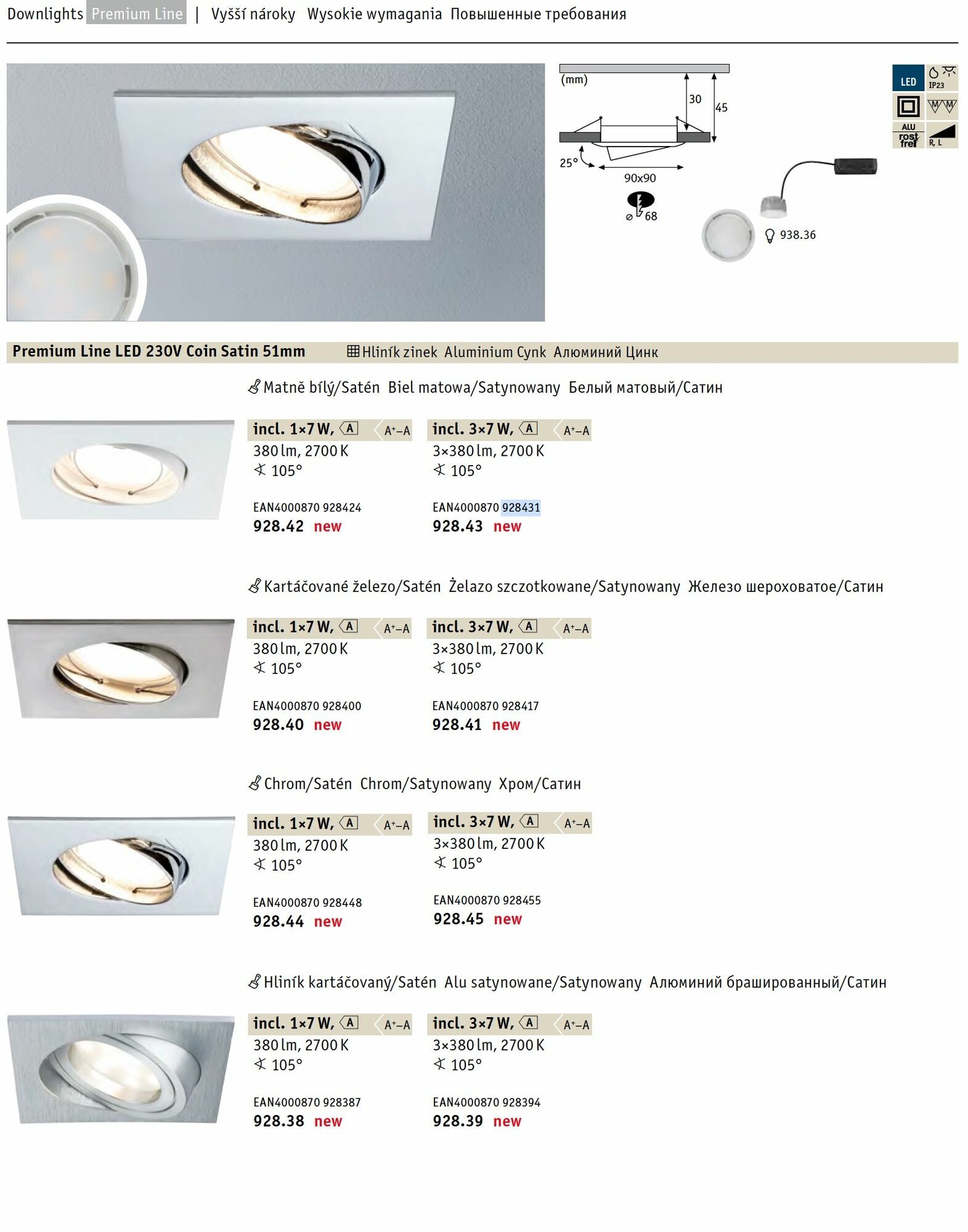 Светильник встраиваемый Paulmann Premium 7Вт 380Лм 2700К IP23 LED 230В Белый Димм Набор 3шт. 92843. интересное: