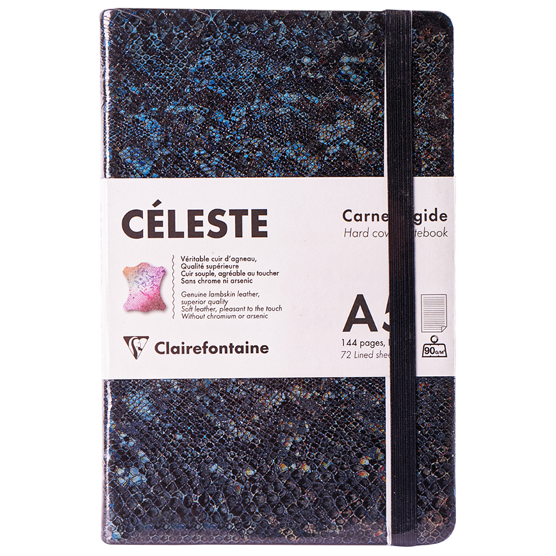 Купить Записная книжка A5, 72 л, Clairefontaine "Celestial leather. Lazer Black", 90 г/м2, резинка, кожа