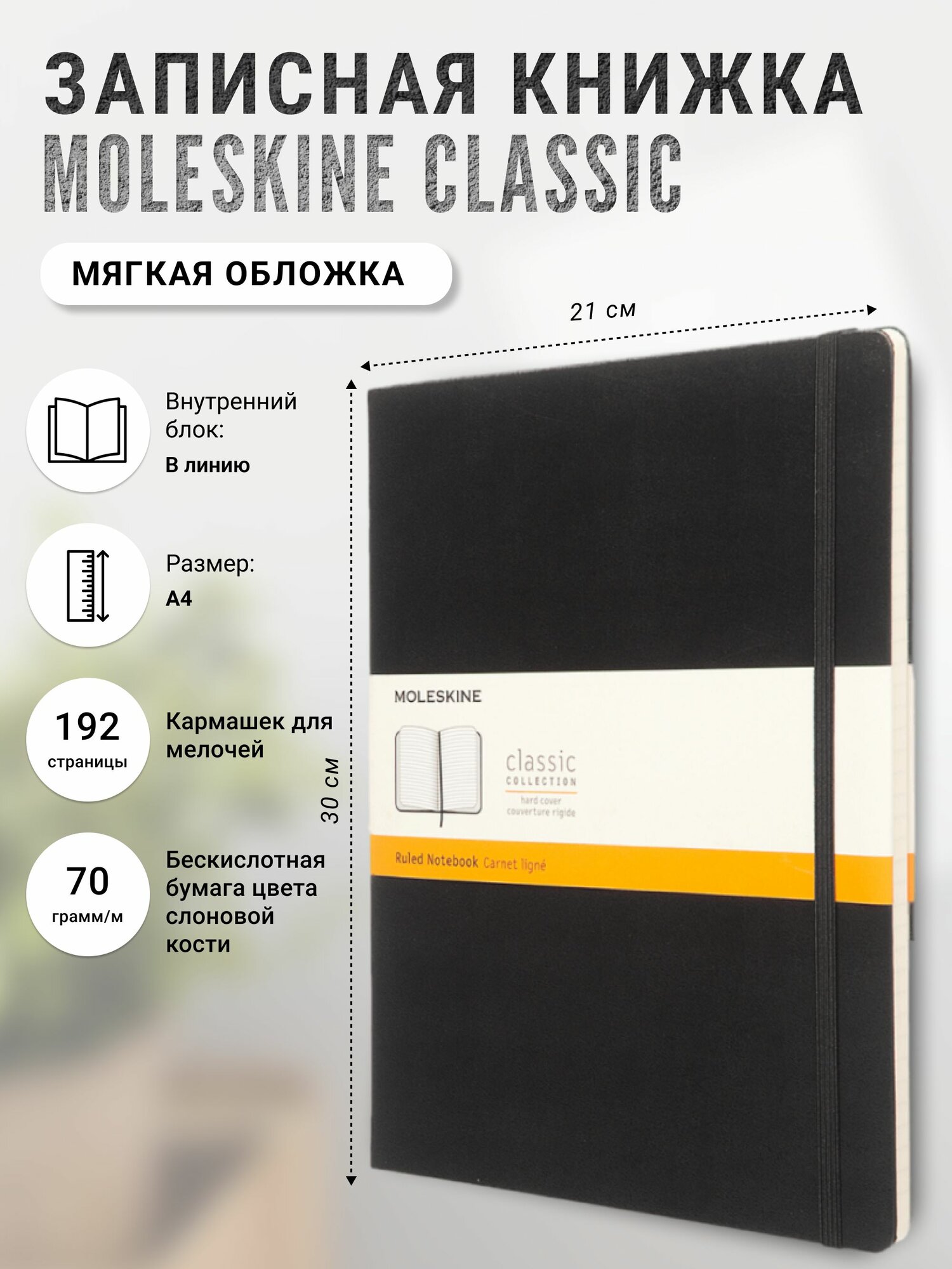 СохранитьЗаписная книжка Moleskine Classic Soft(мягкая обложка), в линейку, XLarge (19х25 см), черная интересное: