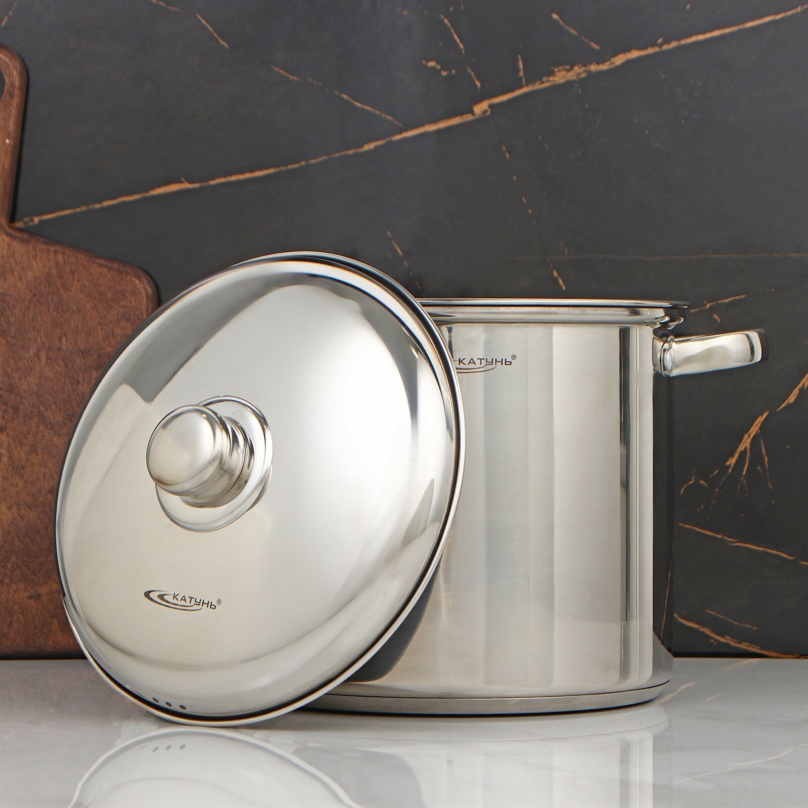 Кастрюля 9 л катунь, гретта, КТ04-D-90, нерж. сталь, зеркальная полировка