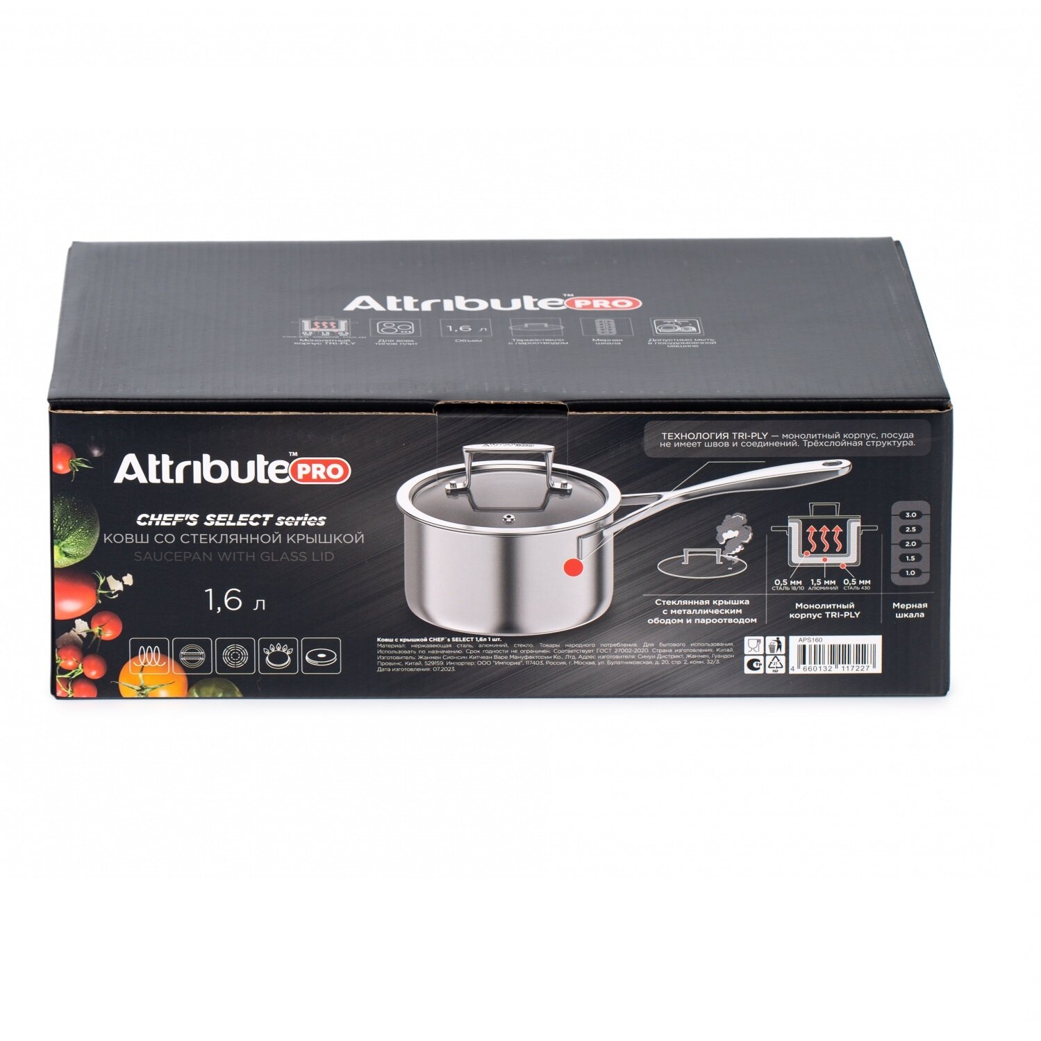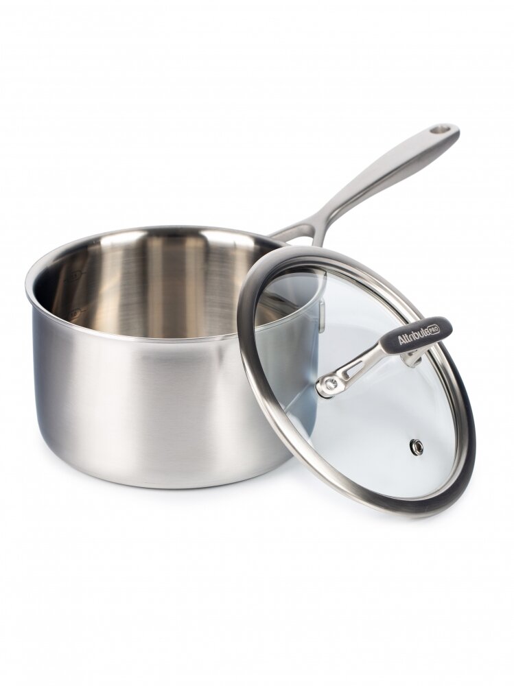 Кастрюля из нержавеющей стали Chef`s Select 2,3 л со стеклянной крышкой, Attribute Pro