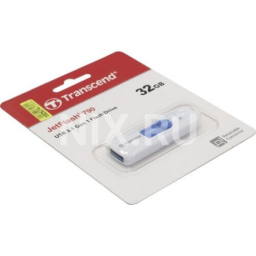 Флеш-карта Transcend JetFlash 790, 32 гб, USB 3,1 G1, бело-синяя (TS32GJF790W)