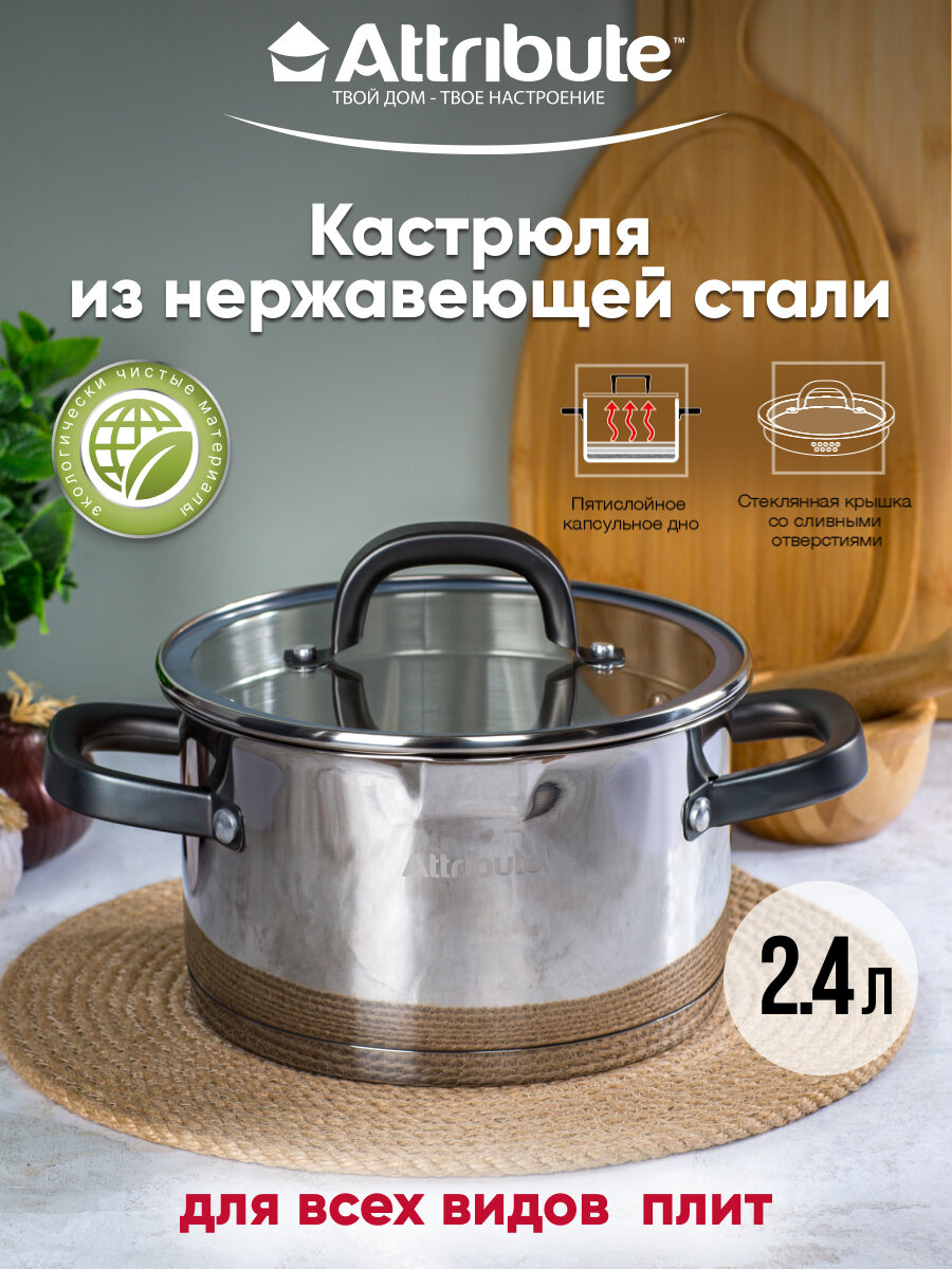 Купить Кастрюля из нержавеющей стали с крышкой Attribute DAVINCI 2.4л 18см индукция