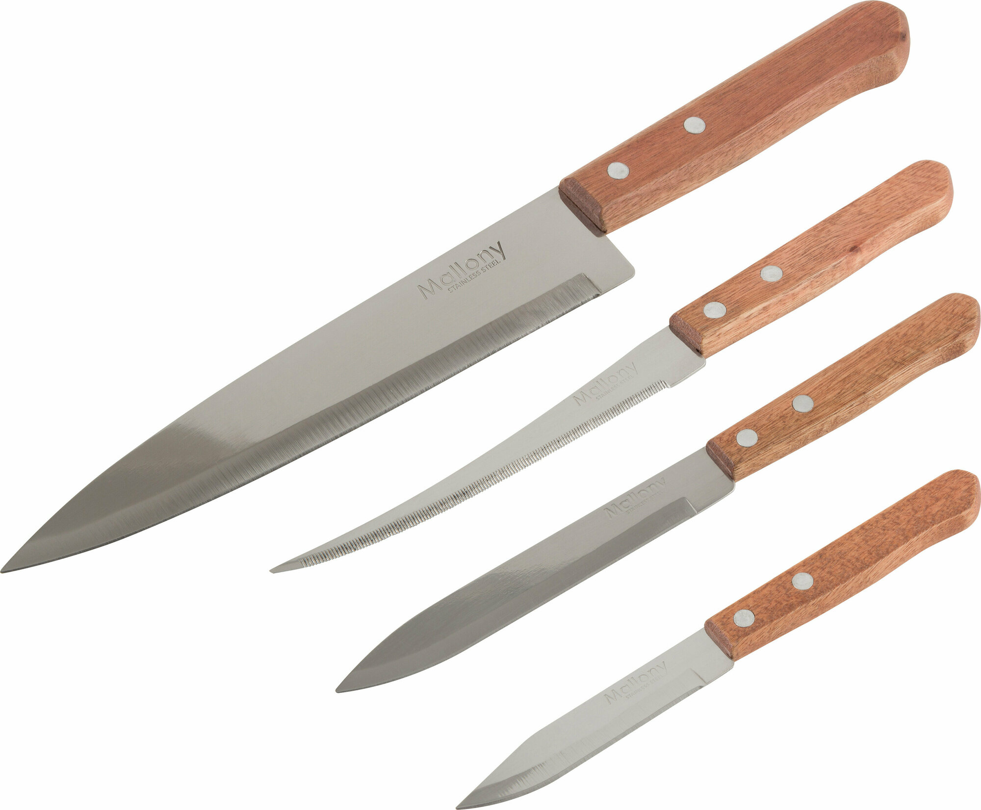 Купить Набор ножей Mallony с деревянной рукояткой ALBERO 4 шт (поварской, универсальный, овощной, овощной малый)
