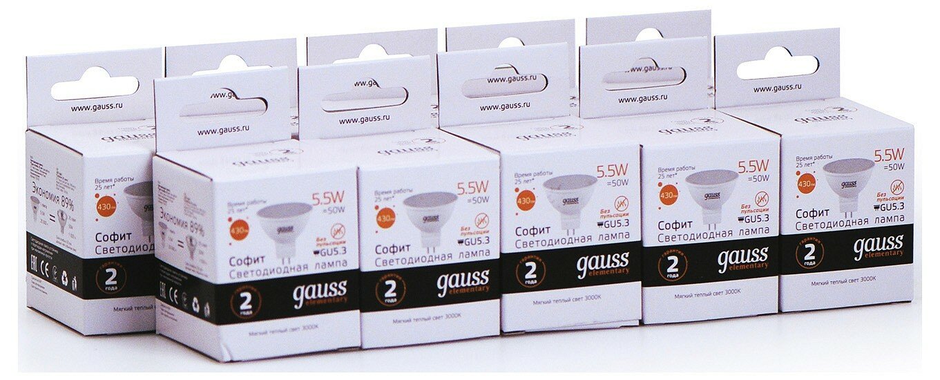 Ниже Вы можете прочитать отзывы на Светодиодная лампочка Gauss Elementary MR16 3000K (5.5 Вт, GU5.3) (13516), ознакомится с подробными характеристиками, посмотреть интересные обзоры и фотографии на Светодиодная лампочка Gauss Elementary MR16 3000K (5.5 Вт, GU5.3) (13516).