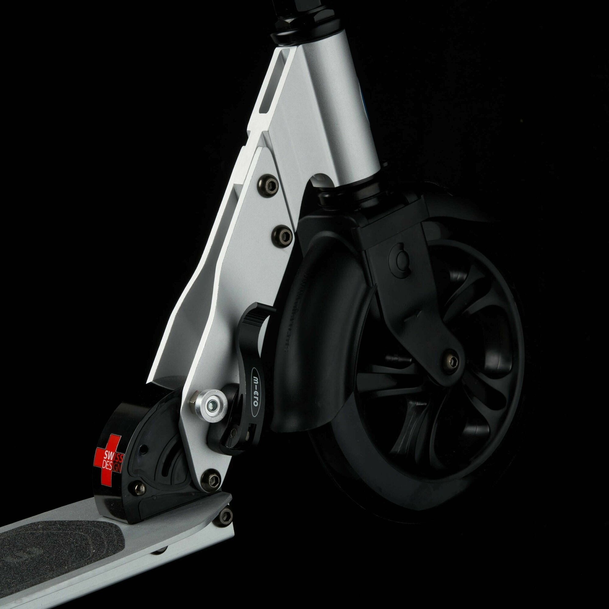 Низкая посадка ( = маневренность и устойчивость, по аналогии с гоночным автомобилем), очень хорошие подшипники (я бывший урбан-роллер, так что поверьте мне), благодаря им и продуманности всей конструкции самокат держит прыжки, перегрузы, высокую скорость, неровности и мокрый асфальт. Красивый, плавный (ничего не торчит, все компактно, как в швейцарском ноже). Есть подноженька =) |