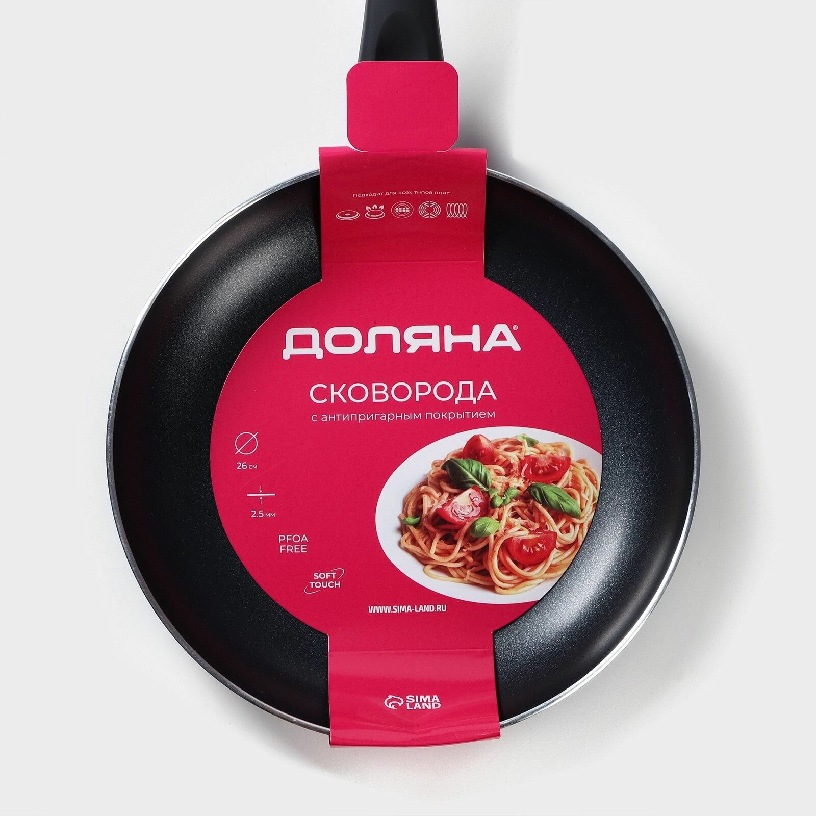 Купить Сковорода Доляна Basic, d-26 см, индукция, пластиковая ручка, антипригарное покрытие, цвет черный