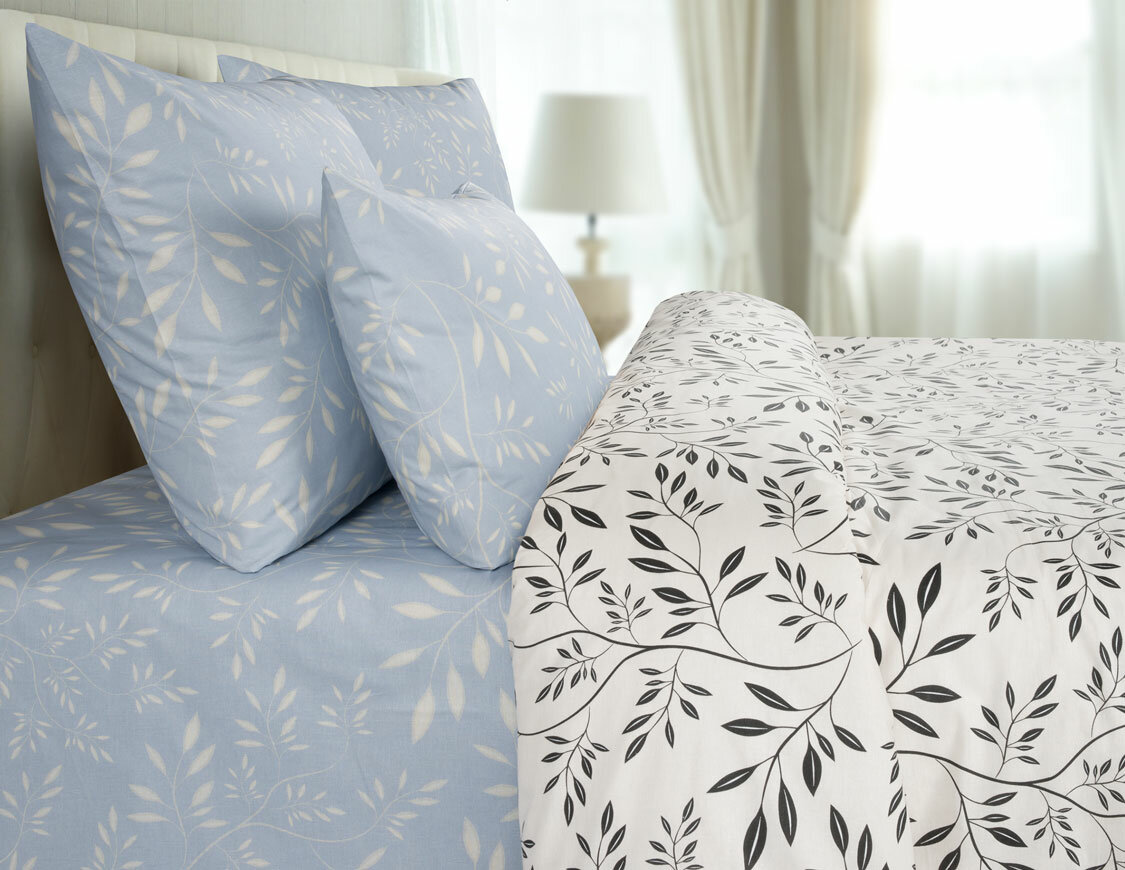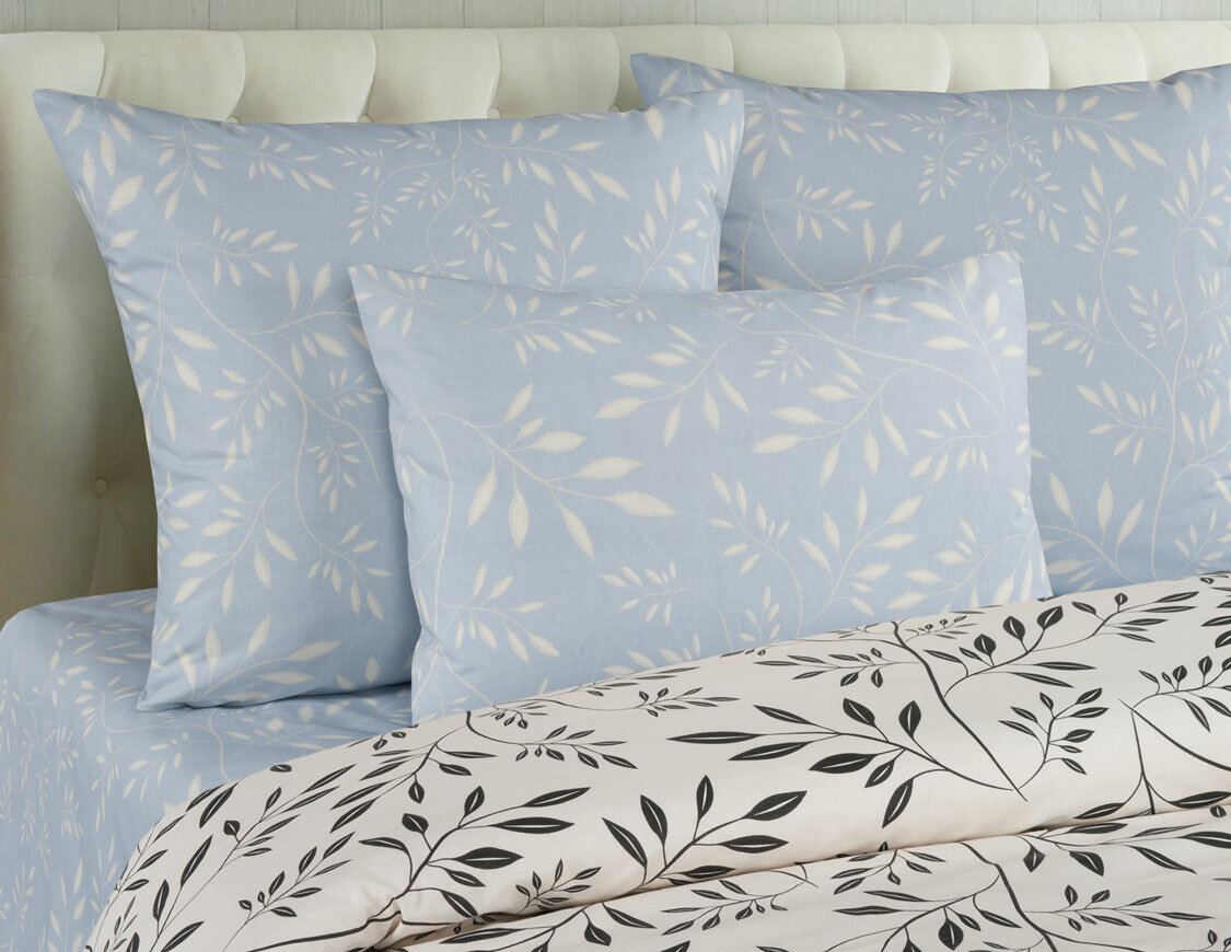Перкаль ЗефирТекс Постельное белье Barbery, перкаль, листья, бежевый (Дуэт с нав. 70х70 см,)