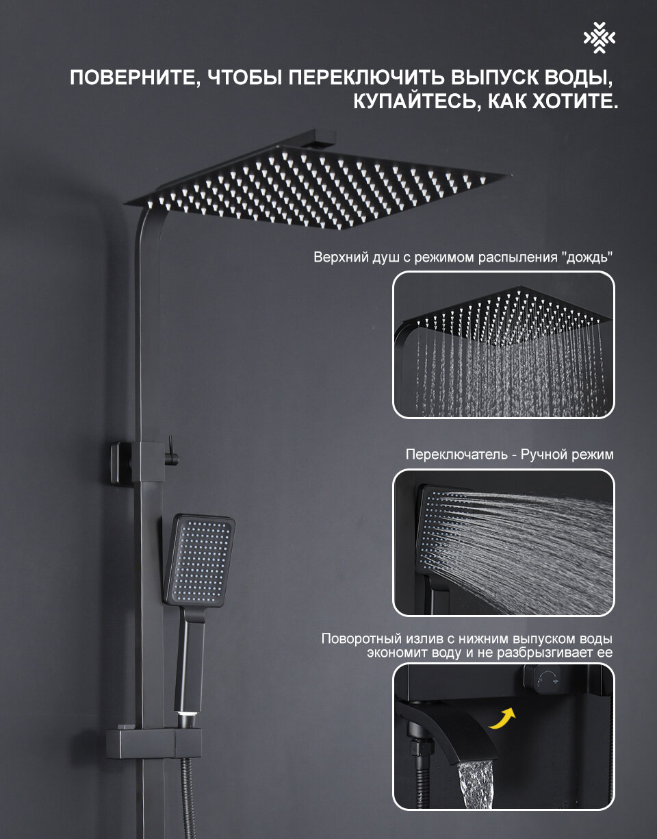 СохранитьДушевая стойка со смесителем и тропическим душем Frap F24803-16 нержавеющая сталь, черный интересное: