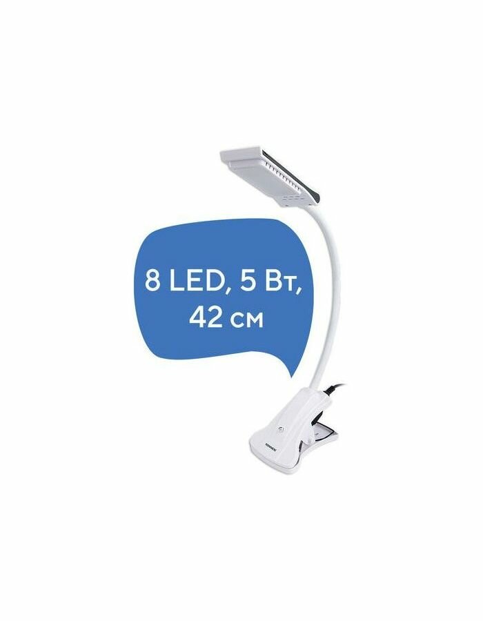 Светильник настольный Sonnen OU-138, на прищепке, светодиодный, 5Вт, белый (236668)