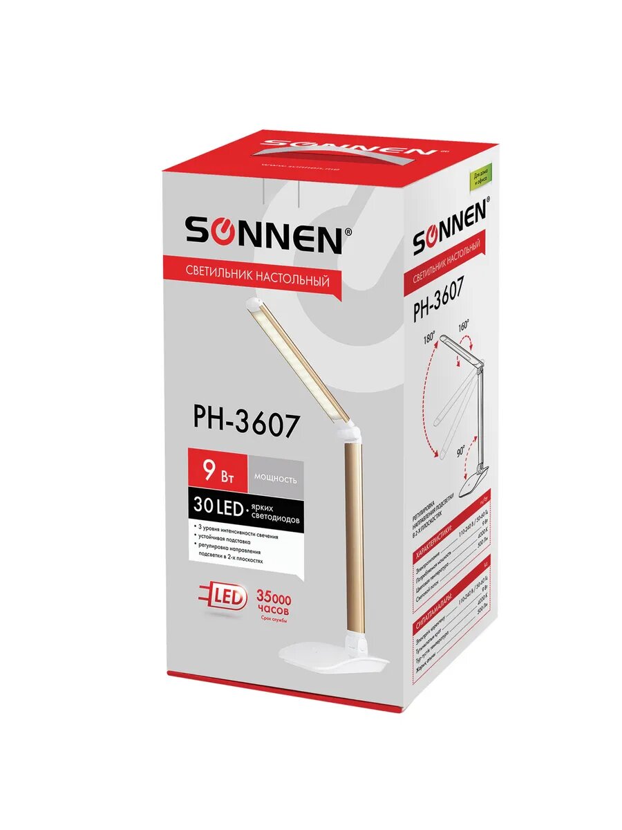 Светильник настольный SONNEN PH-3607, на подставке, светодиодный, 9 Вт, металлический корпус, серый, 236686