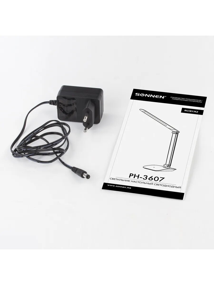 Настольный светильник SONNEN PH-3607, на подставке, светодиодный, 9 Вт, алюминий, серебристый, 236686