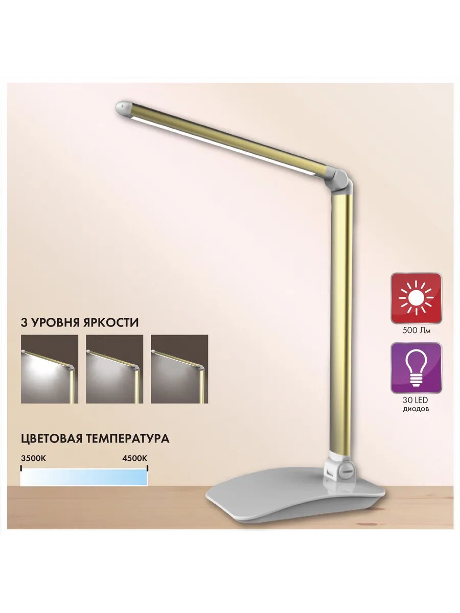 Настольная лампа-светильник SONNEN PH-3607, на подставке, LED, 9 Вт, металлический корпус, серый, 236686, 236686