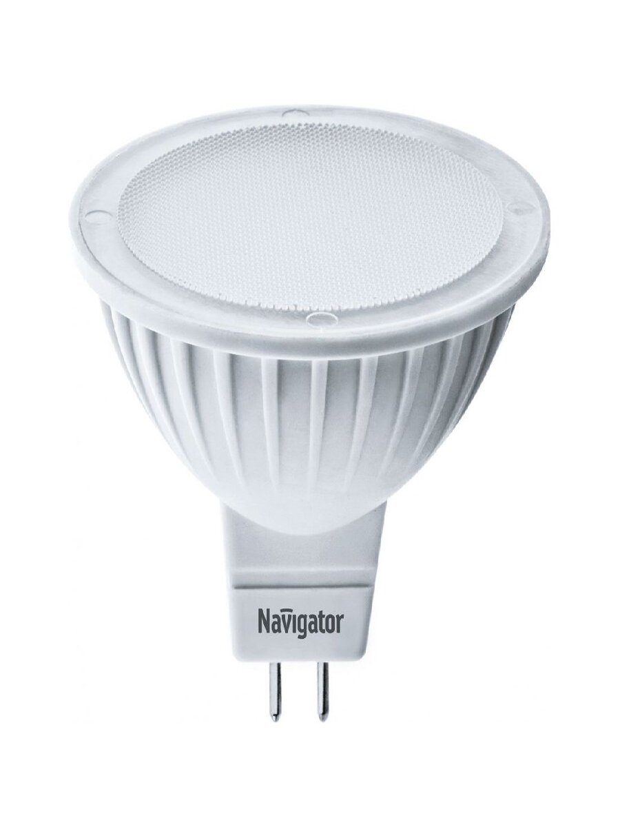 (5 шт.) Светодиодная лампочка Navigator MR16, мощность 7 Вт, напряжение питания 220 В, цветовая температура 4000 K, нейтральный белый свет, цоколь GU5.3, размер Ø50х52 мм