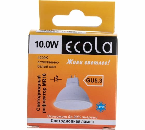 Ниже Вы можете прочитать отзывы на Лампочка светодиодная 10,0W GU5.3 MR16 LED - Ecola (M2RV10ELC) 4200K (дневной свет), для встраиваемых светильников, ознакомится с подробными характеристиками, посмотреть интересные обзоры и фотографии на Лампочка светодиодная 10,0W GU5.3 MR16 LED - Ecola (M2RV10ELC) 4200K (дневной свет), для встраиваемых светильников.