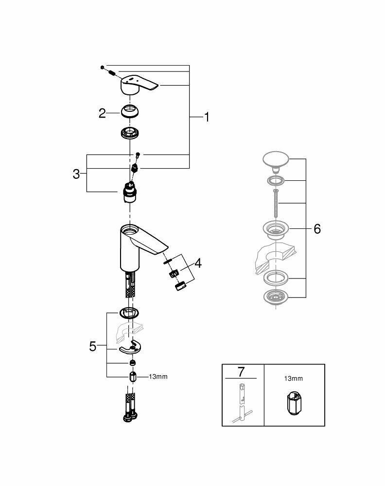 Смеситель для раковины без донного клапана CoolStart Grohe Eurosmart 32154 003 (32154003) хром