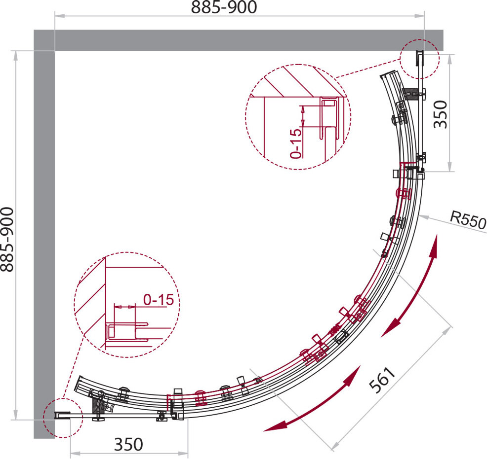 Уголок душевой BelBagno Acqua 900x900 ACQUA-R-2-90-C-NERO