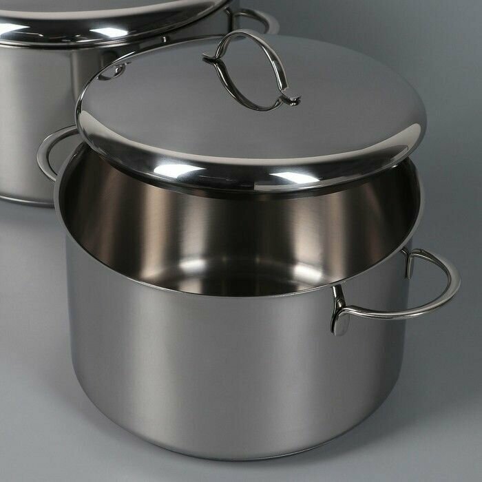 | Дополнительная информация | трехслойное теплораспределительное дно (сталь-алюминий-сталь); материал крышки: сталь; материал ручек: сталь, крепление ручек: точечная сварка; ГОСТ 27002-86; марка стали: AISI 304, 18/10, 08Х18Н10 |