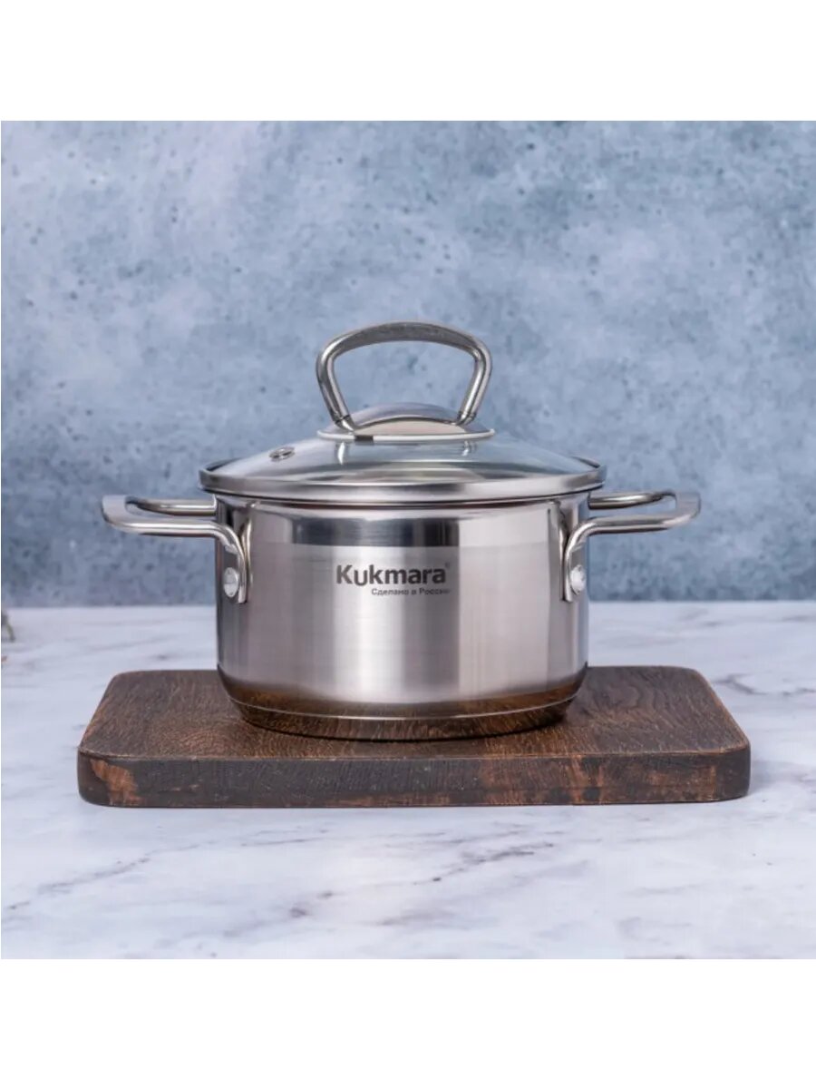 Кастрюля из нержавеющей стали KUKMARA Safia 1,2 л со стеклянной крышкой