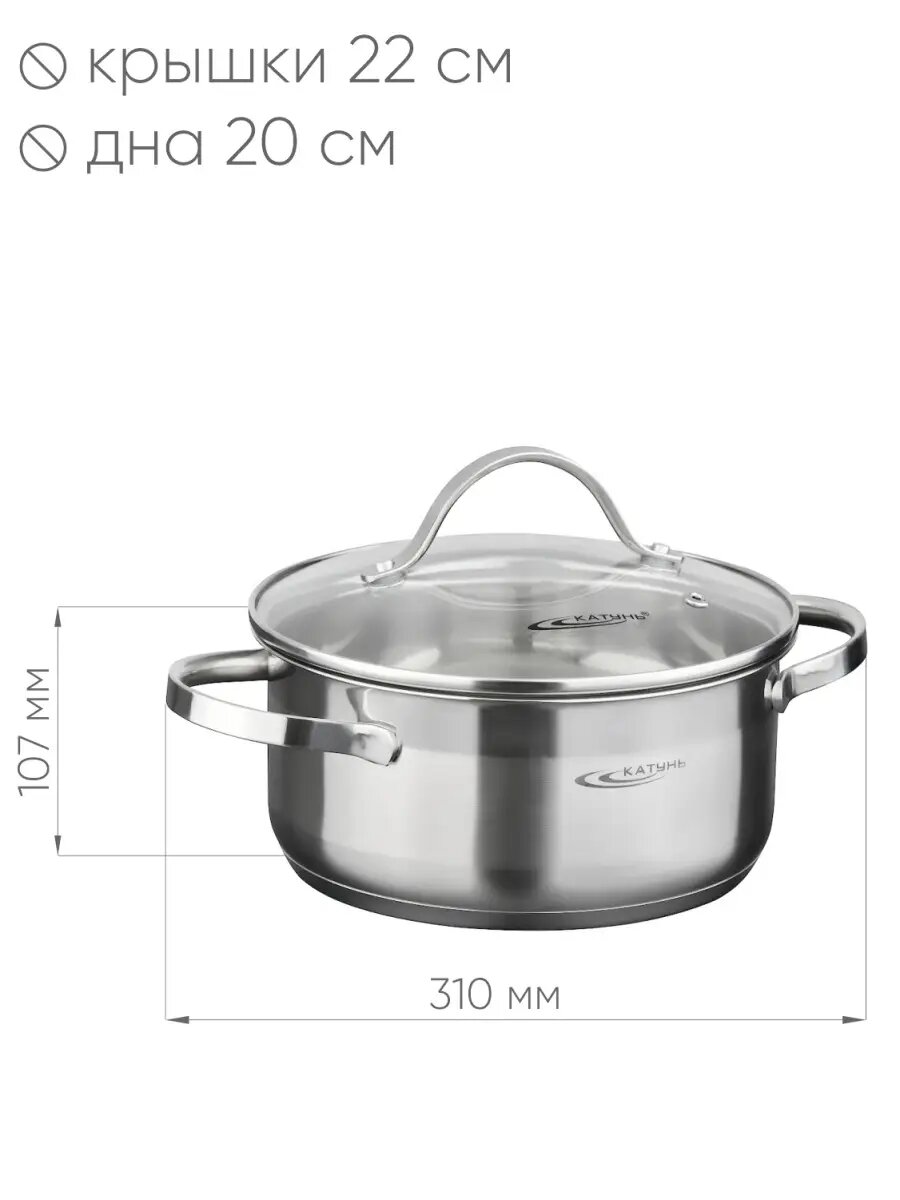 Кастрюля Катунь "Альта", d 22 см, 4,2 л, капсульное дно, стеклянная крышка