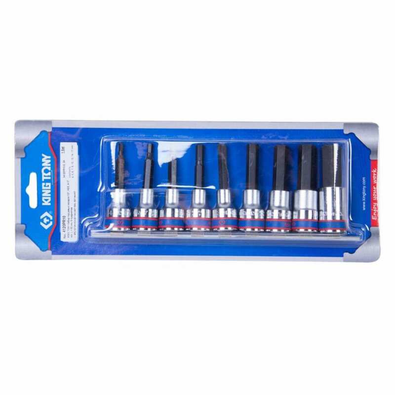 KING TONY 4120PR10 Набор торцевых насадок 1 2 , HEX, 4-17 мм, L = 80 мм, 9 предметов